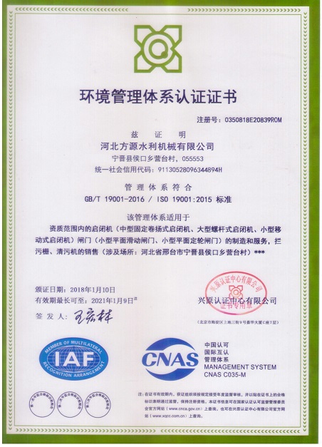環境管理體系認證證書